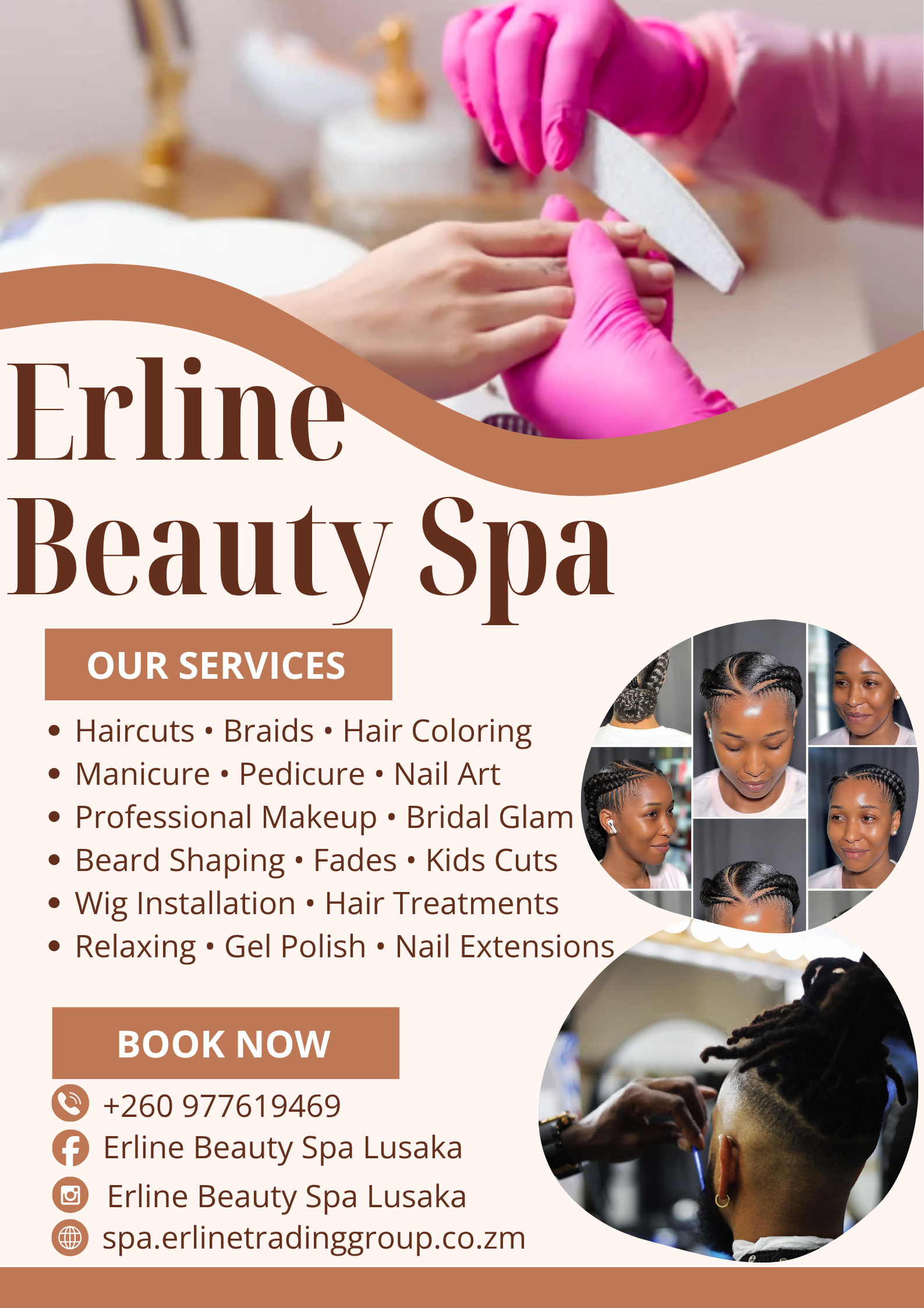 Welcome to Erline Beauty Spa Lusaka — where confidence meets style in every service. Experience premium hair, nails, makeup and grooming at Mungwi Mall.